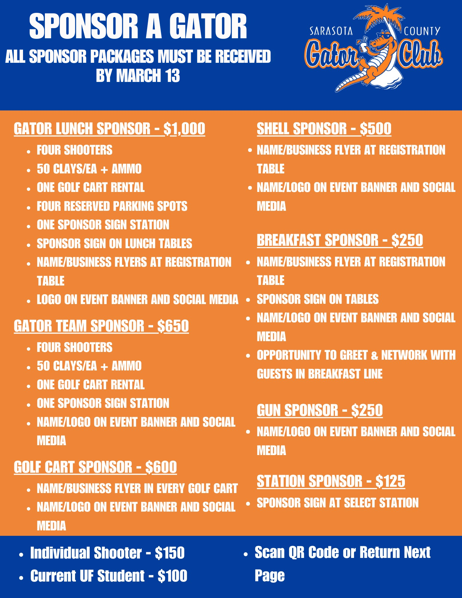Please help us continue to support local Sarasota County students attend the University of Florida with less financial burden and have a great time in the process. Go Gators! 🧡💙